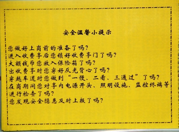 在全國第十三個“安全生產(chǎn)月”期間,宣化東收費(fèi)站采取一系列有效措施,確保“安全生產(chǎn)月”活動取得良好效果。