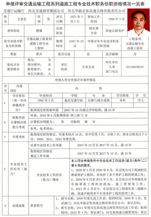 京張公司2017年度專業(yè)技術職稱申報公示(王喜會)